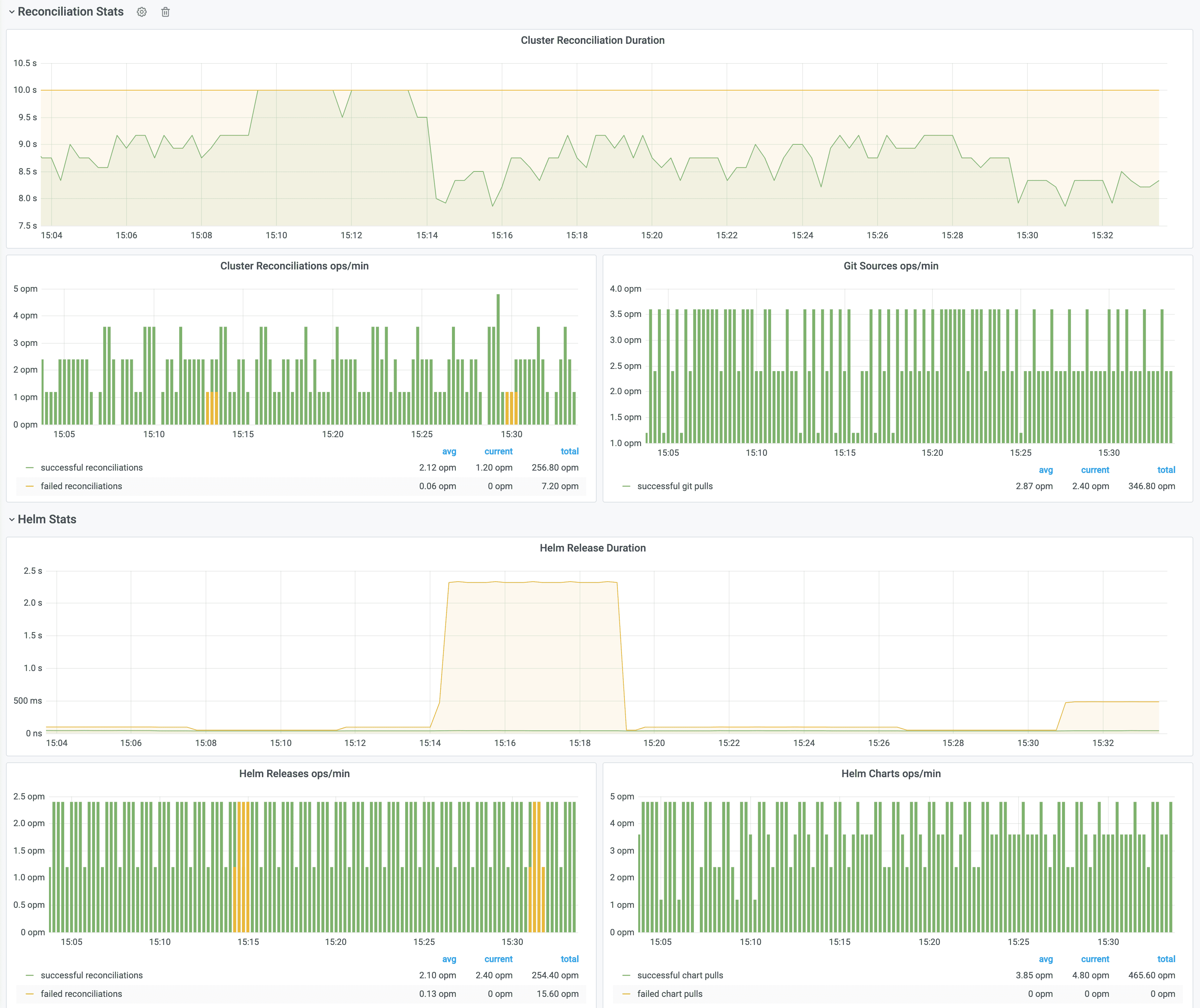 Cluster reconciliation dashboard http://localhost:3000/d/gitops-toolkit-cluster: